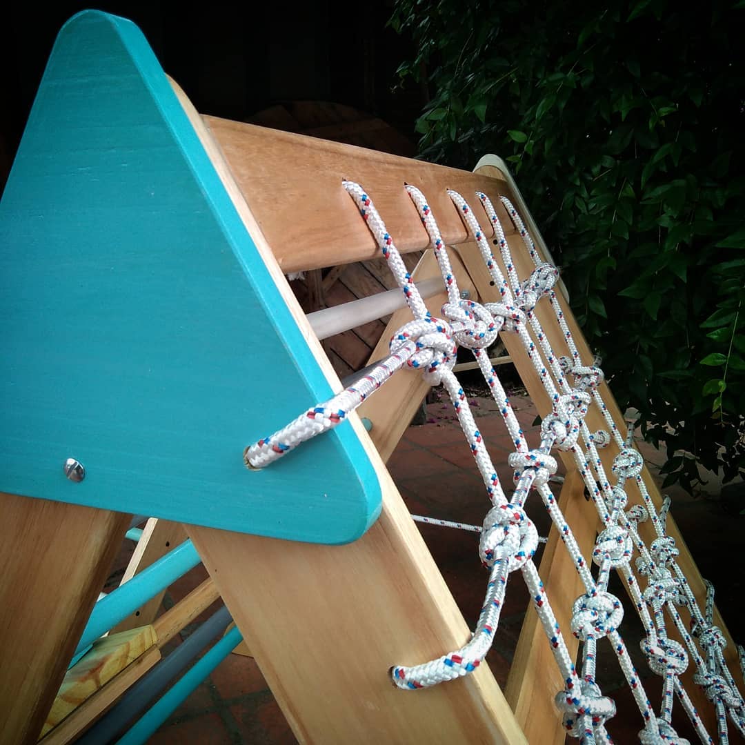 Cuenta con 6 barrotes en uno de sus laterales y una red del otro para estimular diferentes formas de trepar. Es acompañado por una rampa que puede colocarse a diferentes alturas. La rampa cuenta con encastres para facilitar su recorrido de un lado y colocada del lado opuesto funciona como tobogán. Modelo plegable para facilitar el guardado.